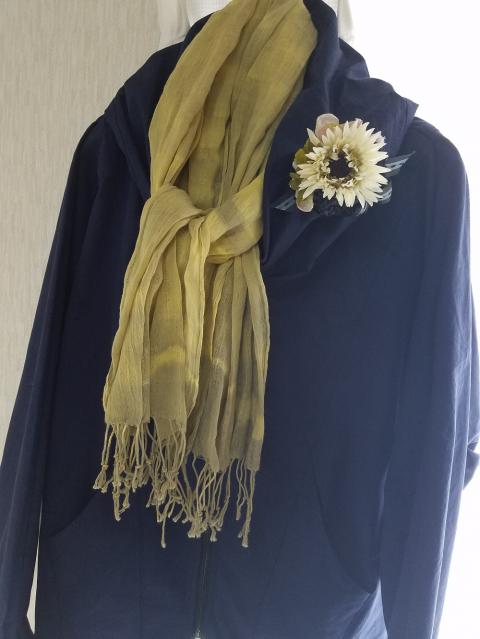 鶴ヶ島サフラン染のストール、綿100%です