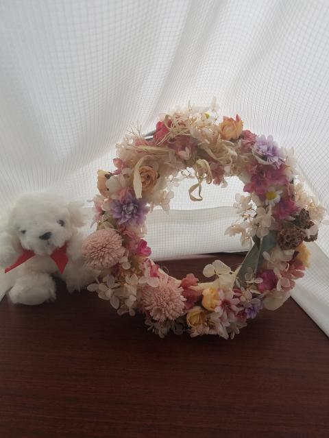 プリザーブドフラワーの紫陽花とカーネーションを使ったふわふわのリ・・・