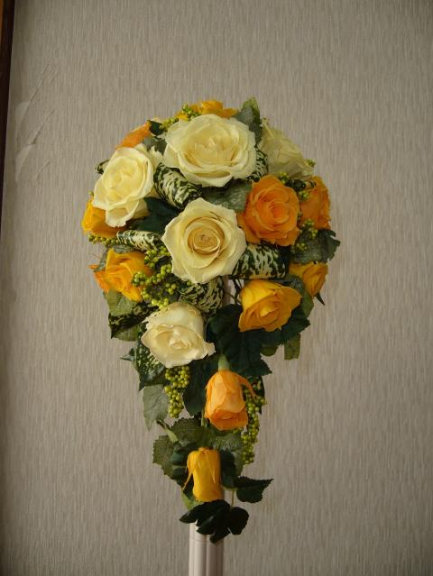 シックな器にアレンジされた プルメリアとばらを使いました。