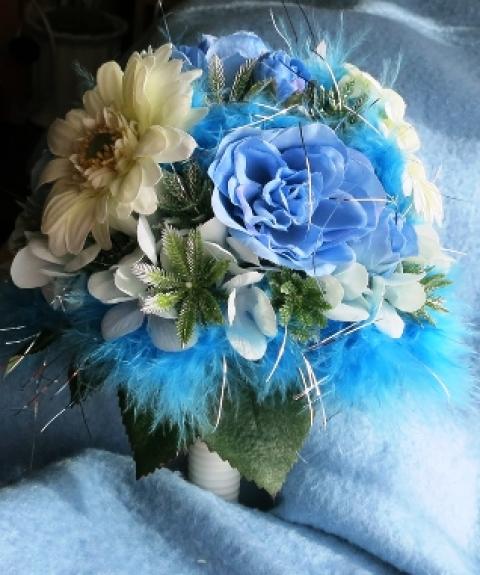 ブルーフェザーのふわふわ入ったミニブーケです
